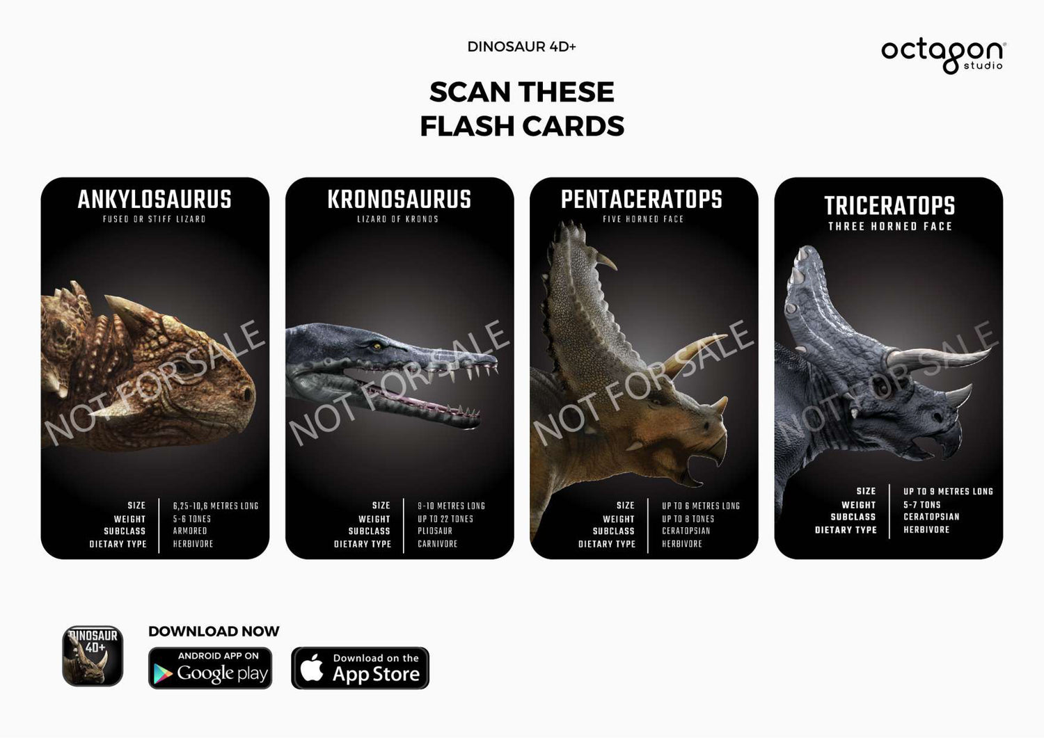 Simply download the Dinosaur 4D+ App on your device and scan these free cards